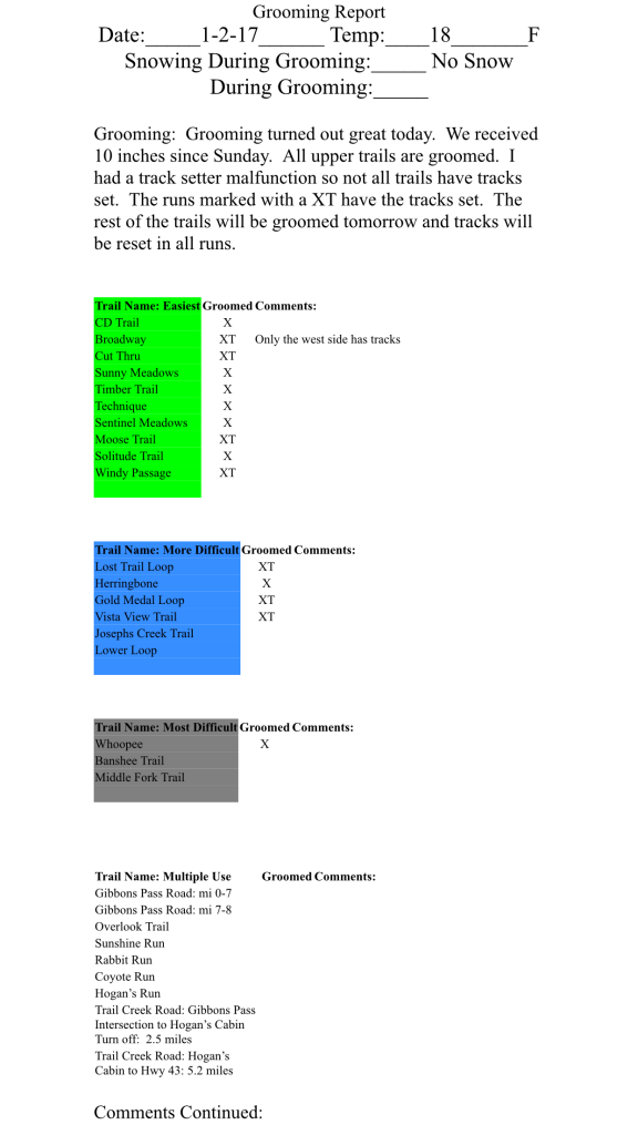 Grooming Report 3/2/2017