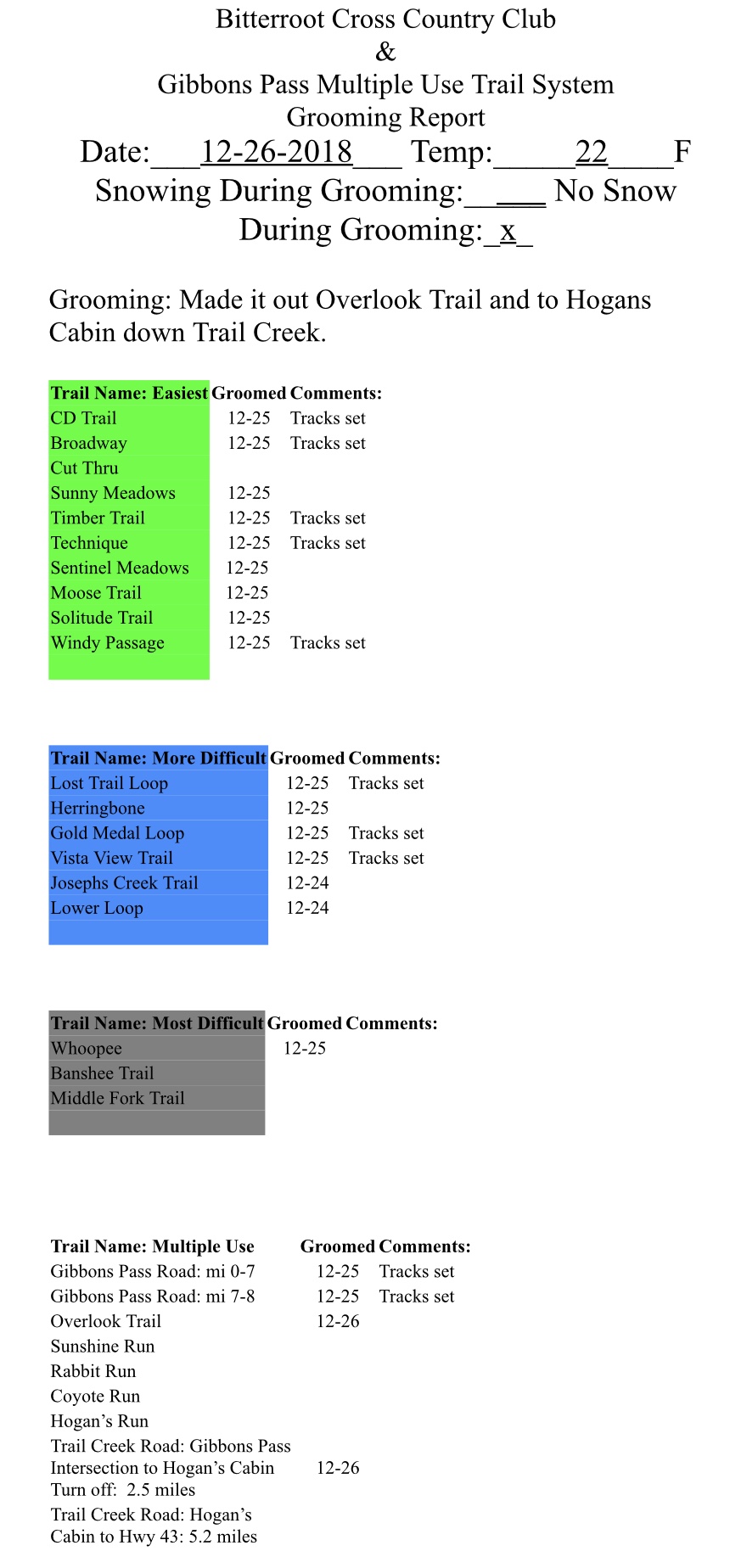 The multi use trails were groomed today, including overlook and trail creek road for the first time this season.