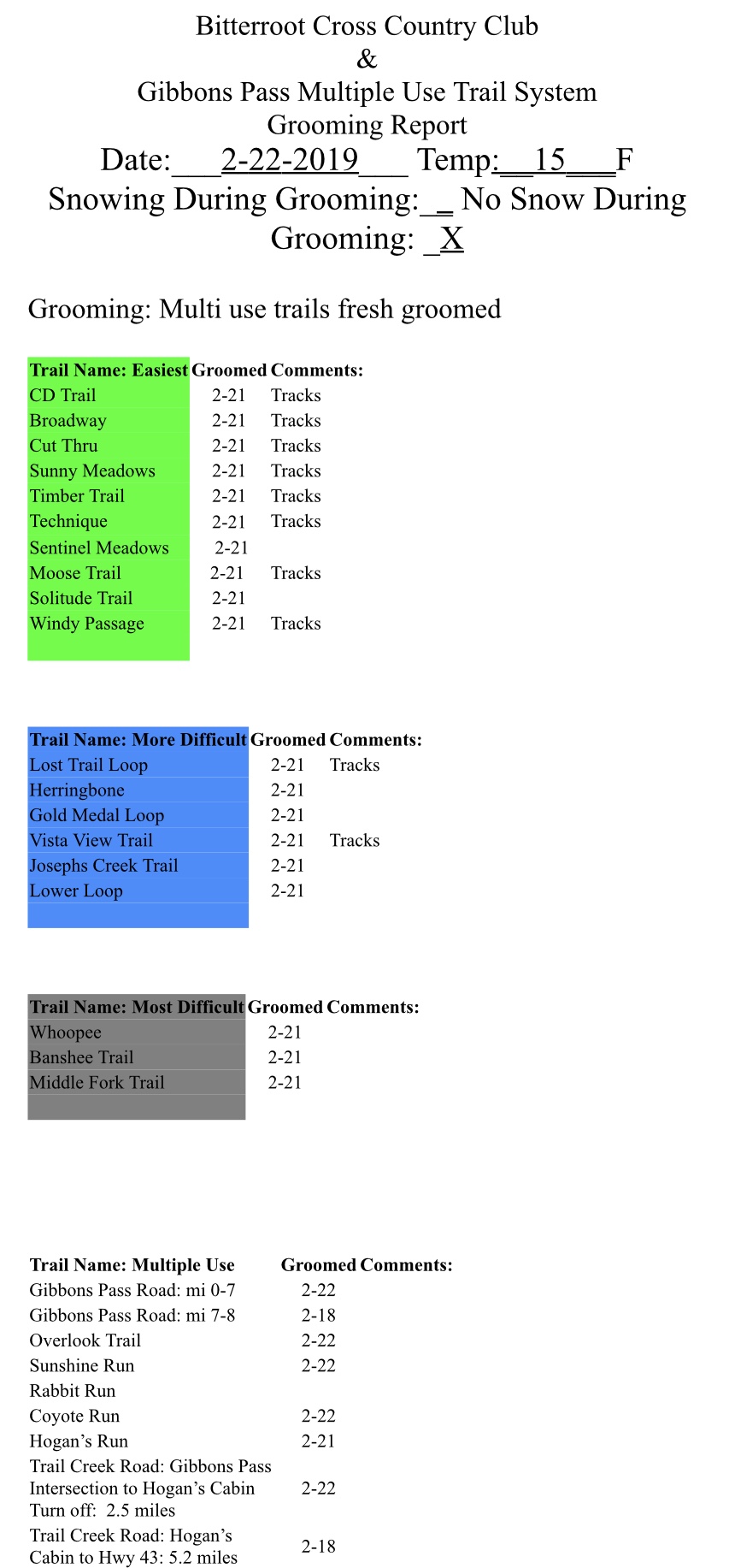 Multi use trails at Chief Joseph Pass were groomed today. Get out there and do some big miles!