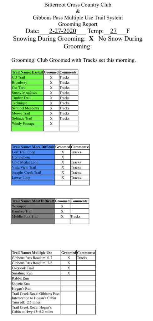 Bitterroot Cross Country Ski Club