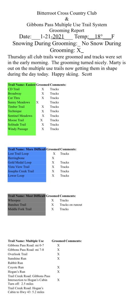 Bitterroot Cross Country Ski Club