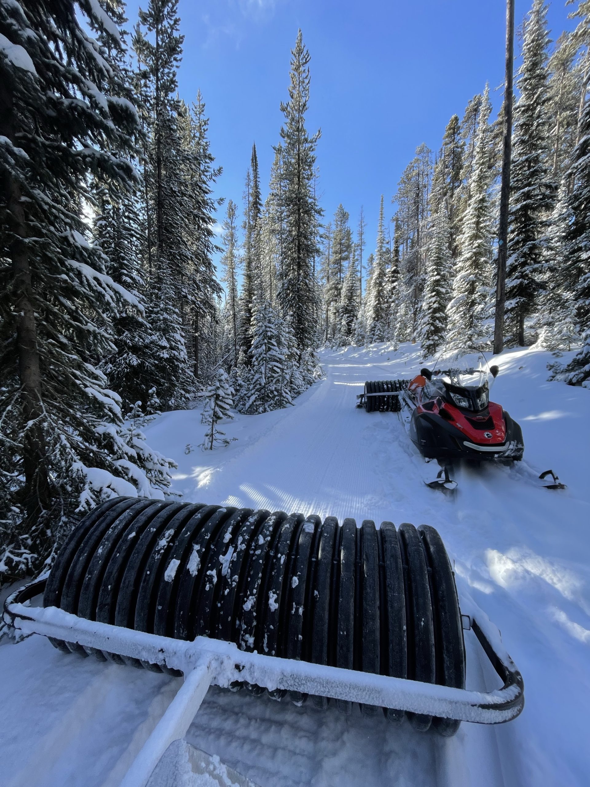 Our volunteer grooming crew started packing down the trails at Chief Joe today. All of the upper trails have been groomed, but not the lower trails or the multi use trails. Some trails have good coverage and are decent skiing, others are stump fields, so keep it slow and pay attention.