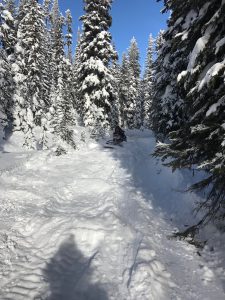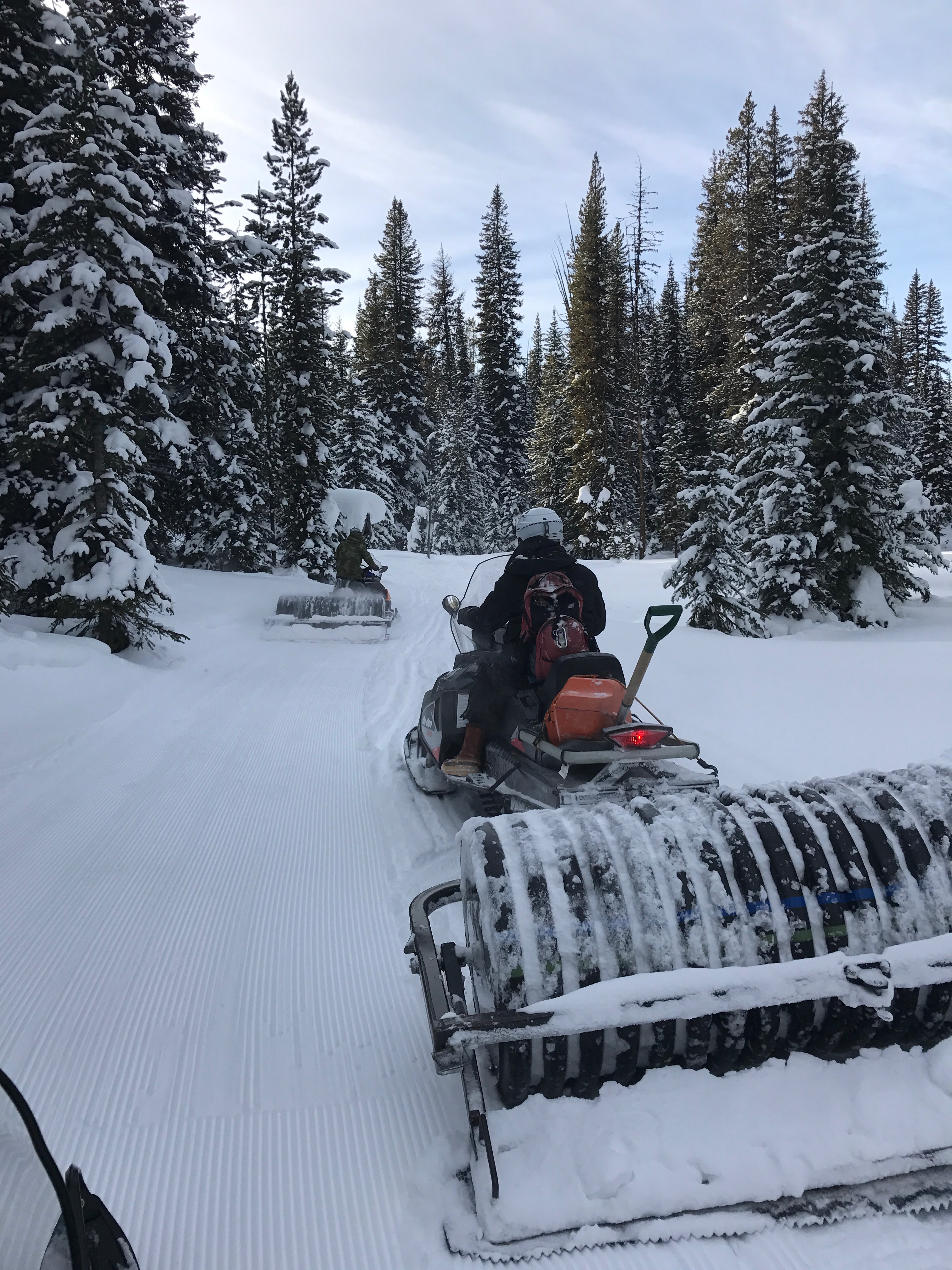 The pisten bully from Lost Trail that has been doing most of the trail grooming this season broke down earlier this week on Windy Passage, and had to be dragged out, which made quite a mess on Windy Passage and Gibbons. The Pisten Bully was still broken down on friday and was not able to groom, but our volunteer grooming crew headed out on snowmobiles and groomed all of the ski trails except Sentinel Ridge. The multi use trails were not groomed. On most trails the classic tracks were still in fine condition, so they were left as-is and not regroomed.